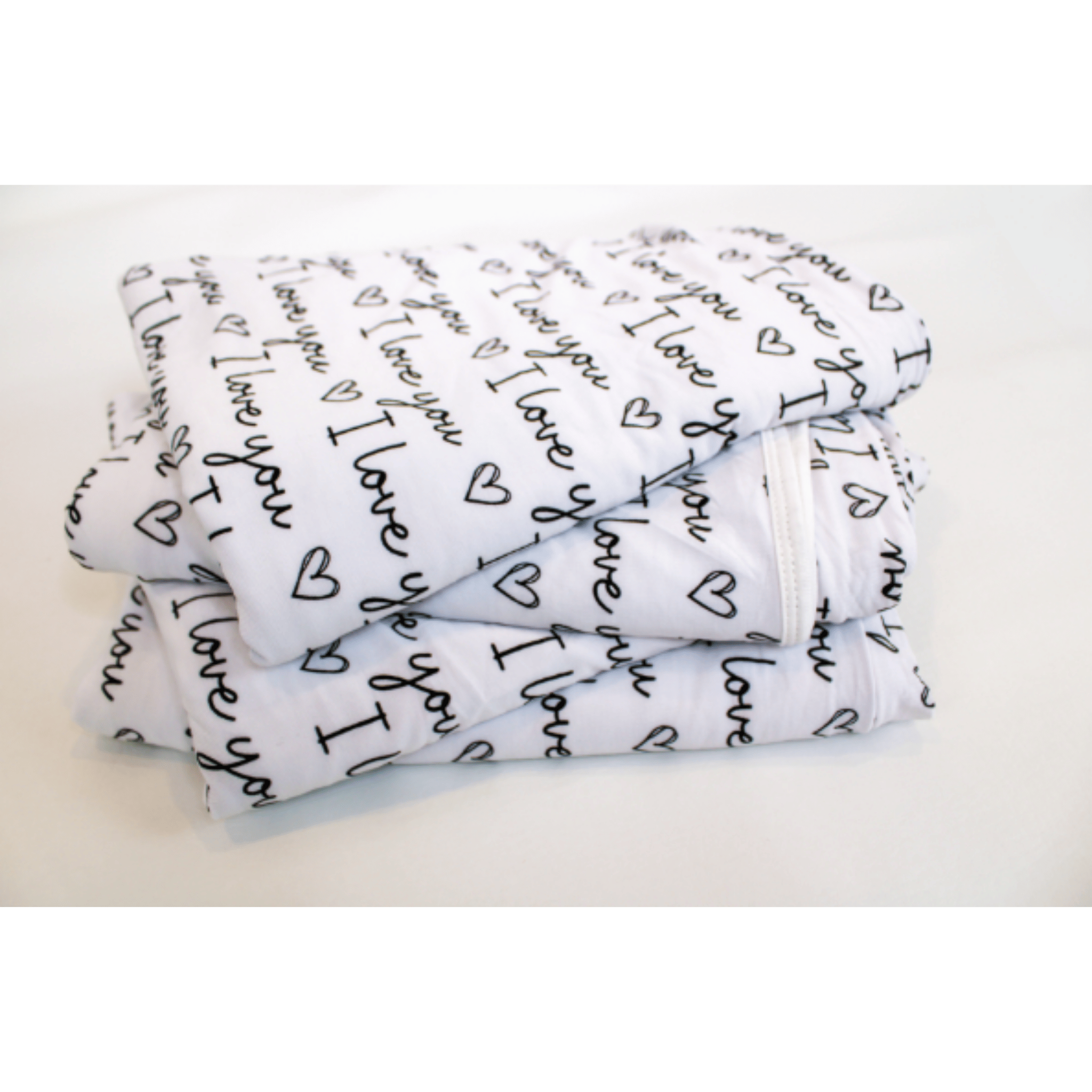 Wrap your little one in the softness and warmth of our "I Love You" Bamboo Blanket. Featuring a sweet and loving design, this blanket is perfect for adding comfort and love to their bedtime or nap time. Crafted from a soft bamboo blend, it’s breathable, gentle on sensitive skin, and perfect for keeping your child cozy and comfortable all day or night. With its sweet "I Love You" design, this bamboo blanket is the perfect blend of love, comfort, and warmth—ideal for your little one!