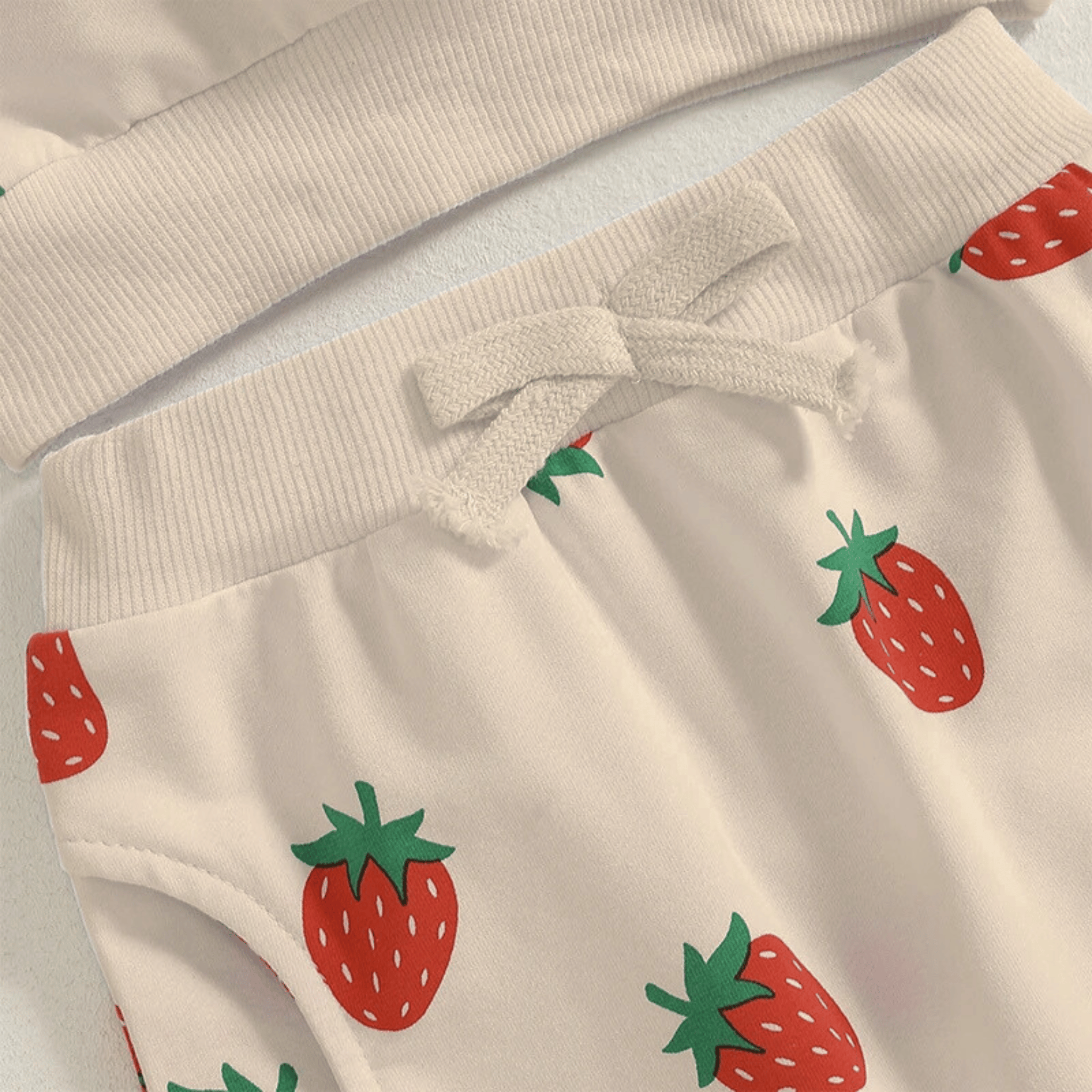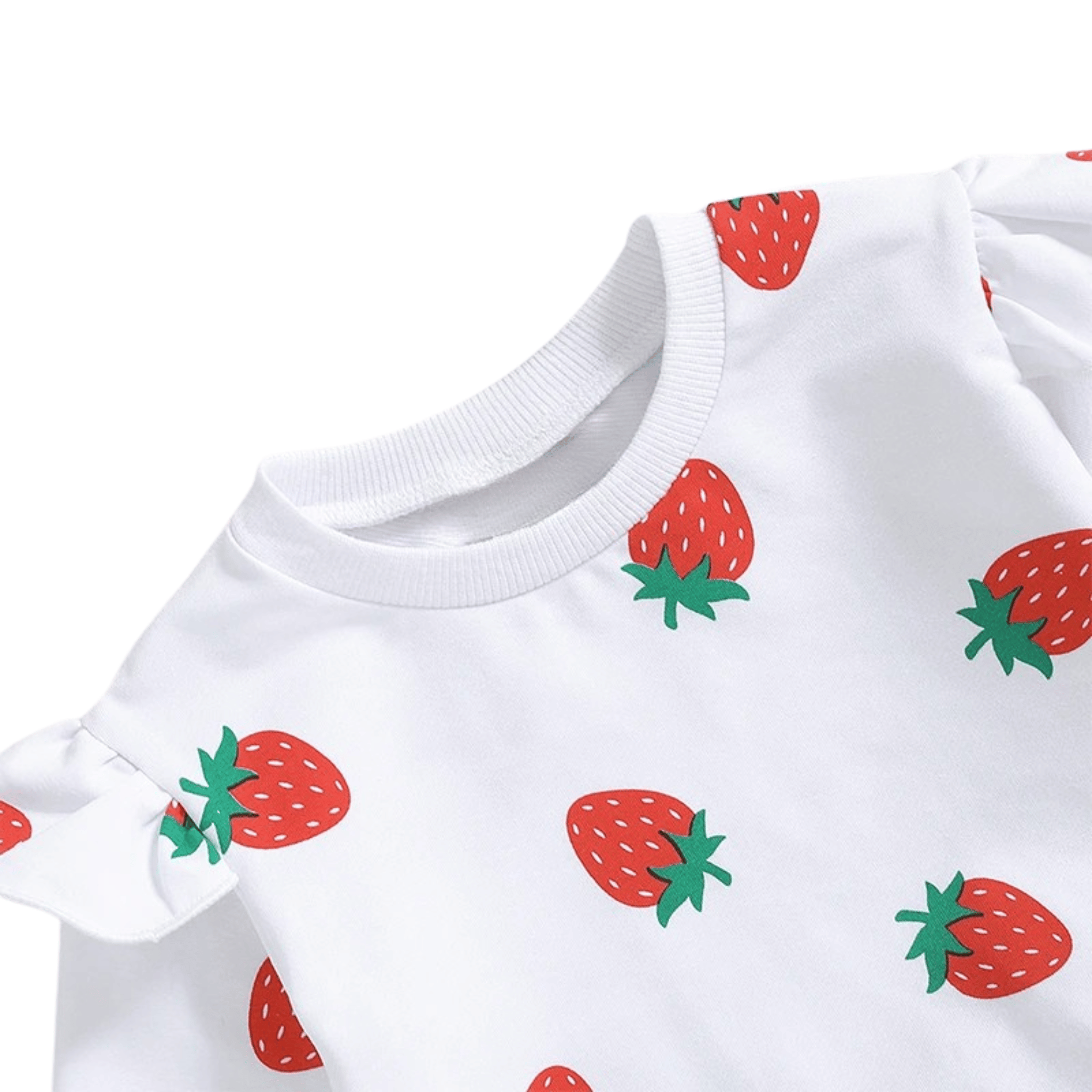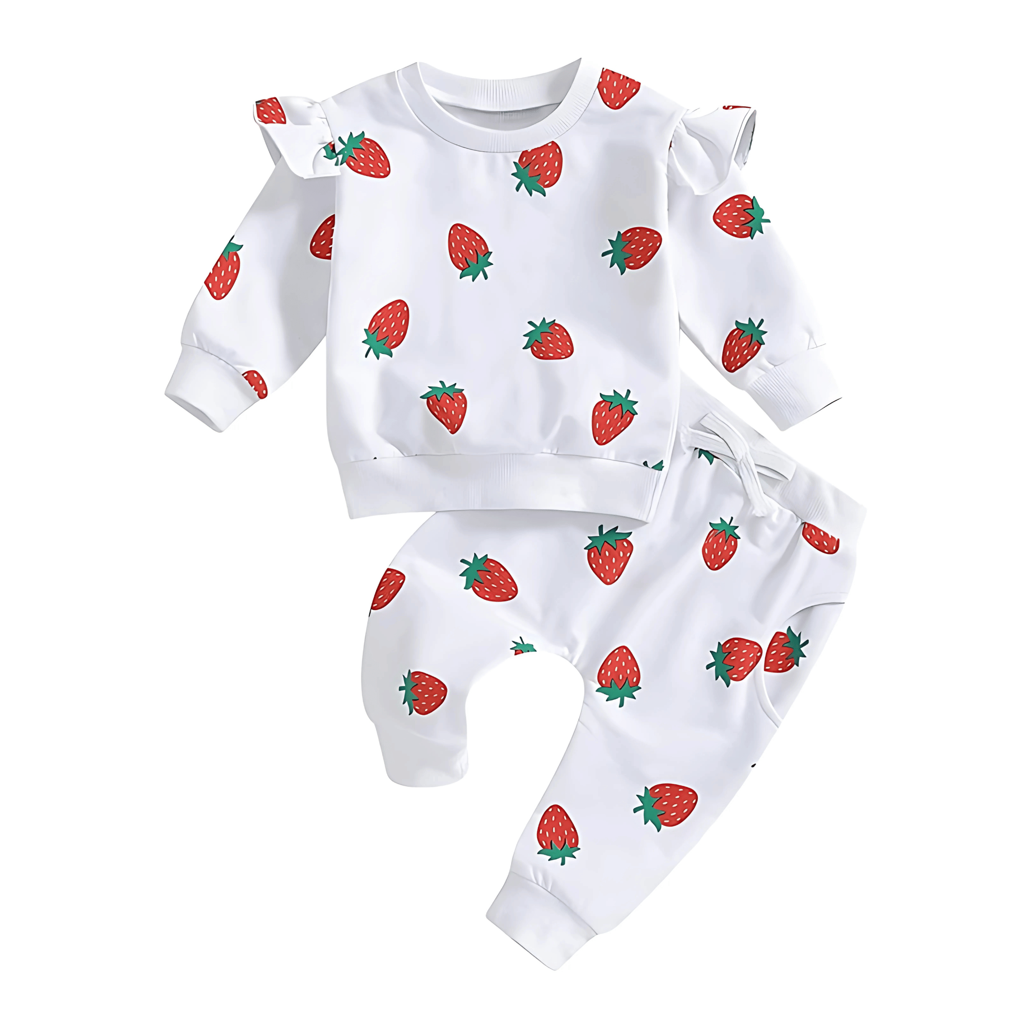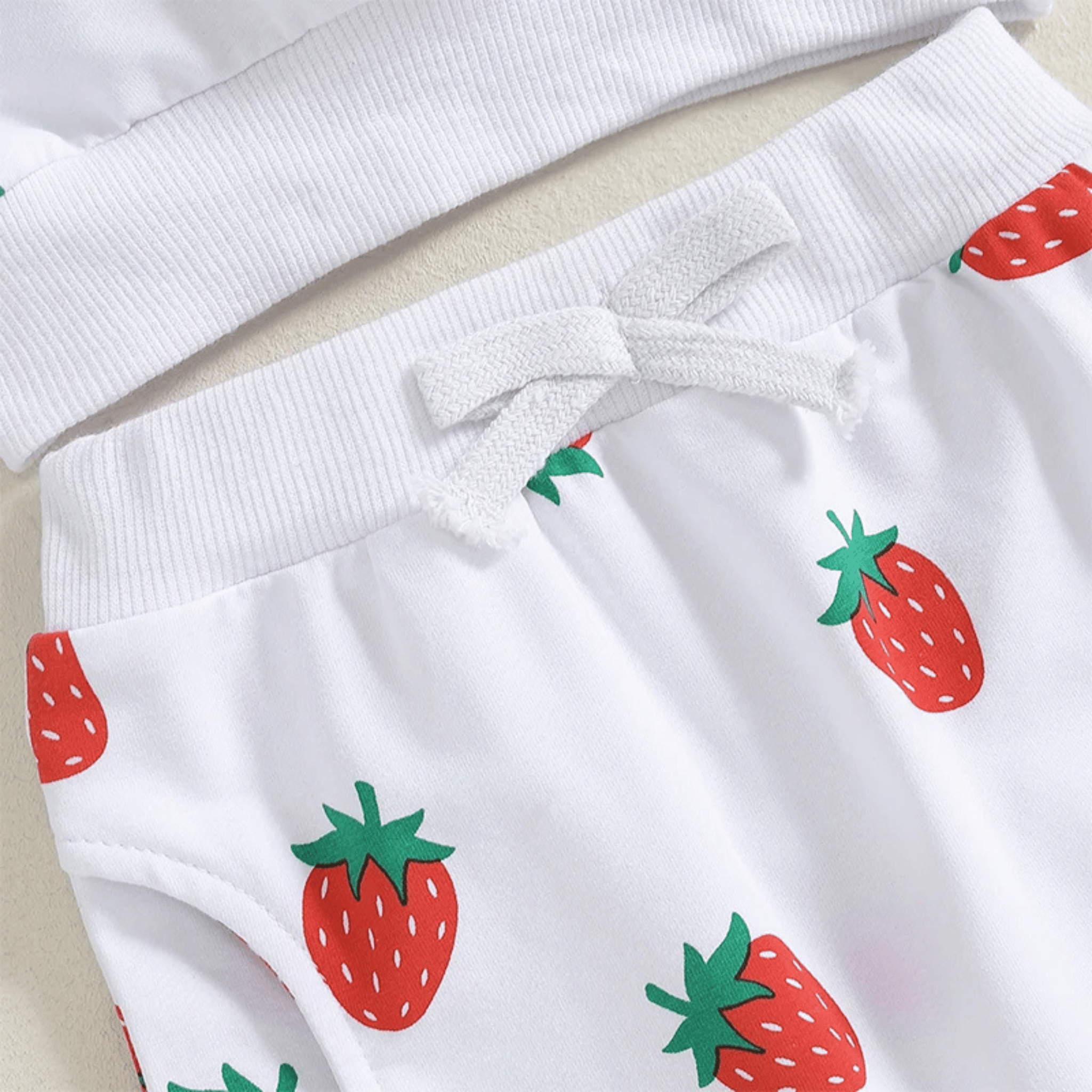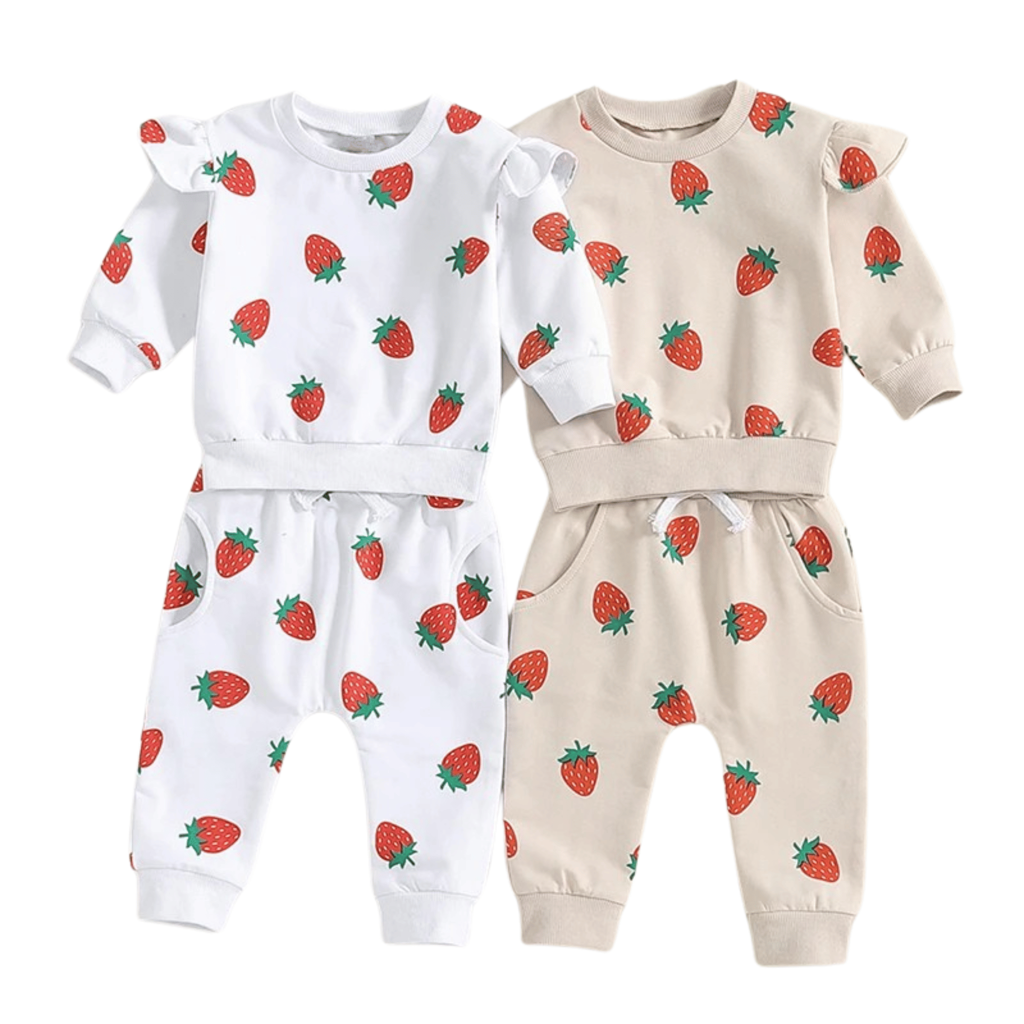 Delightful Design: Adorned with dainty strawberries, this adorable set adds a fresh and playful touch to your little one’s wardrobe.