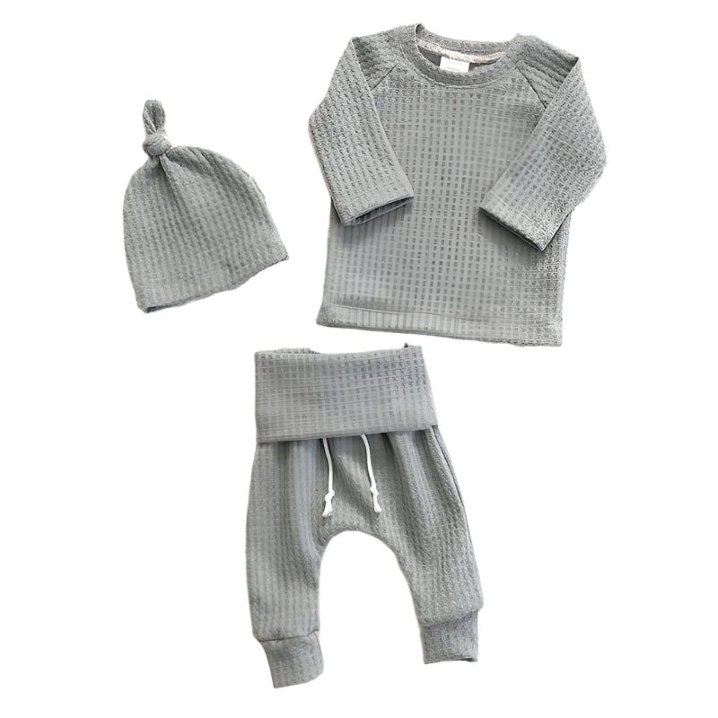 Cotton Waffle Two-Piece Set with Matching Hat