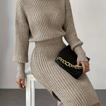 Step into effortless style with our Amara Midi Dress. This dress features a classic turtleneck, a flattering midi length that falls just below the knee, and subtly tapered sleeves for a refined silhouette.