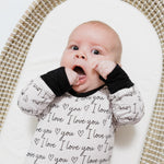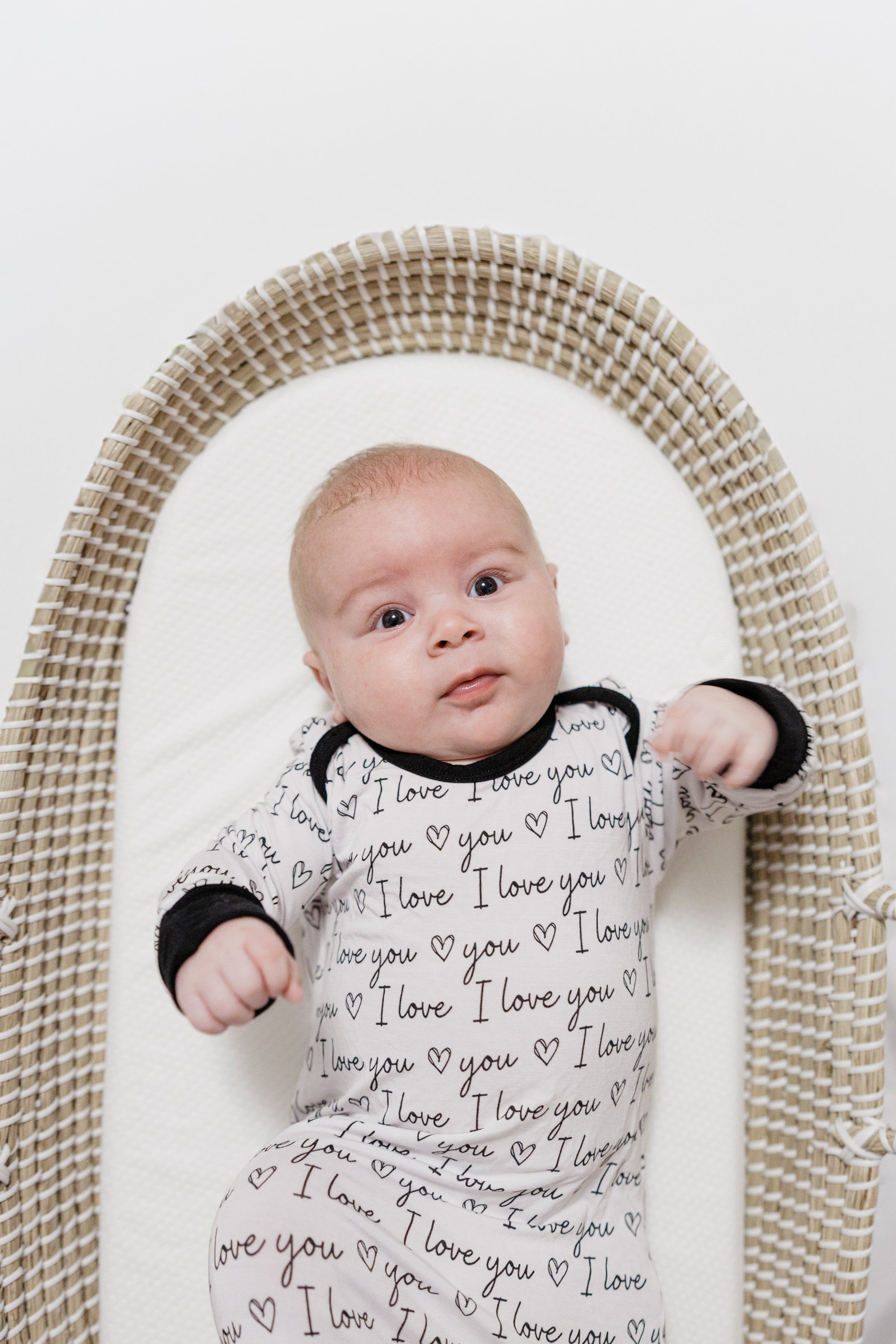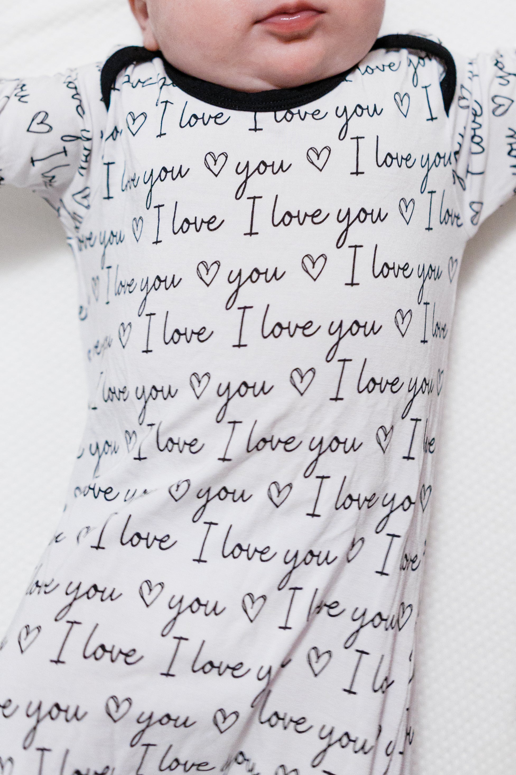 Shop our best-selling “I Love You” print — now available in Zippy Rompers, Two-Piece Pajamas, Knotted Gowns, Blankets, and even Adult Pants!