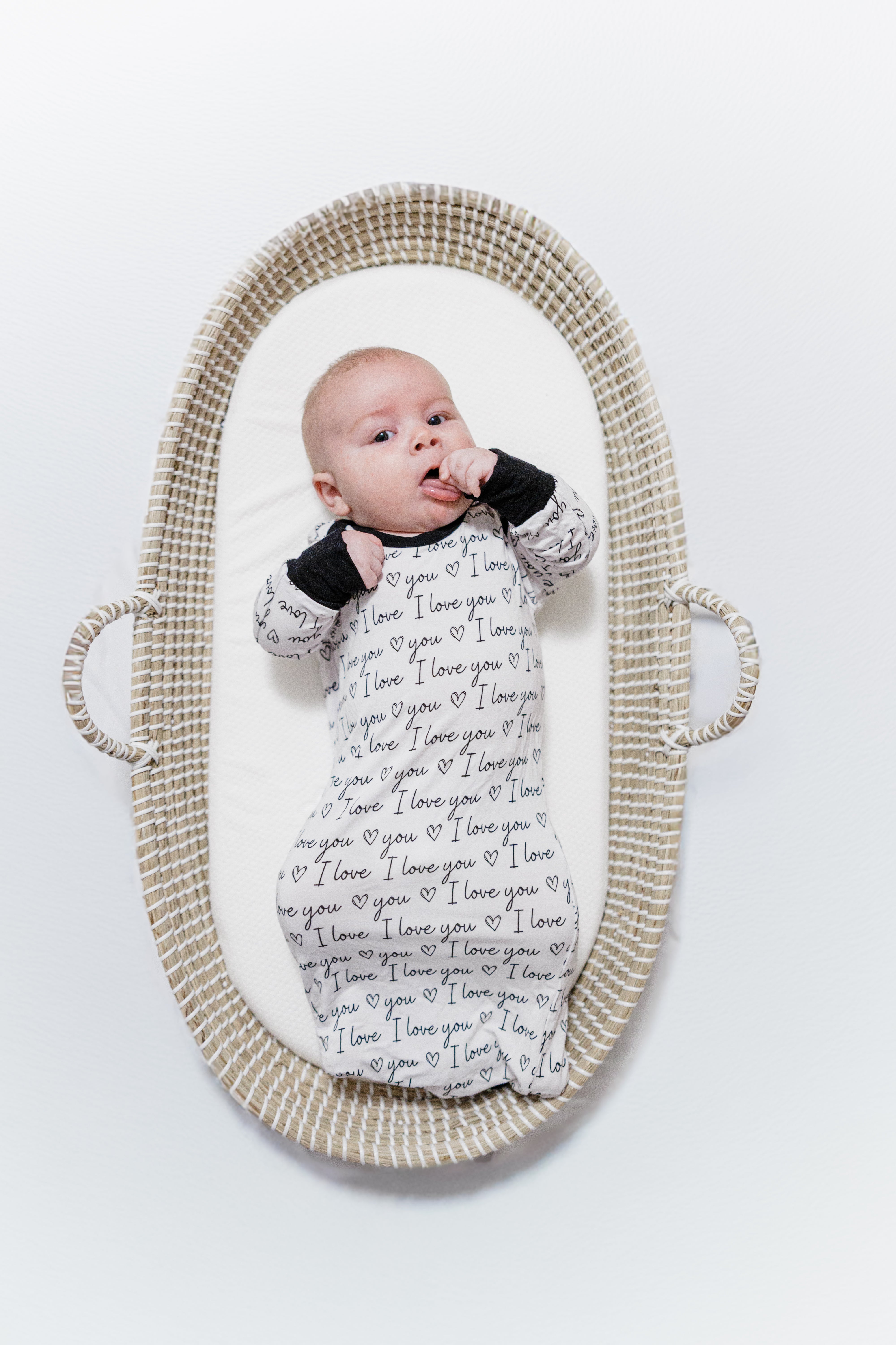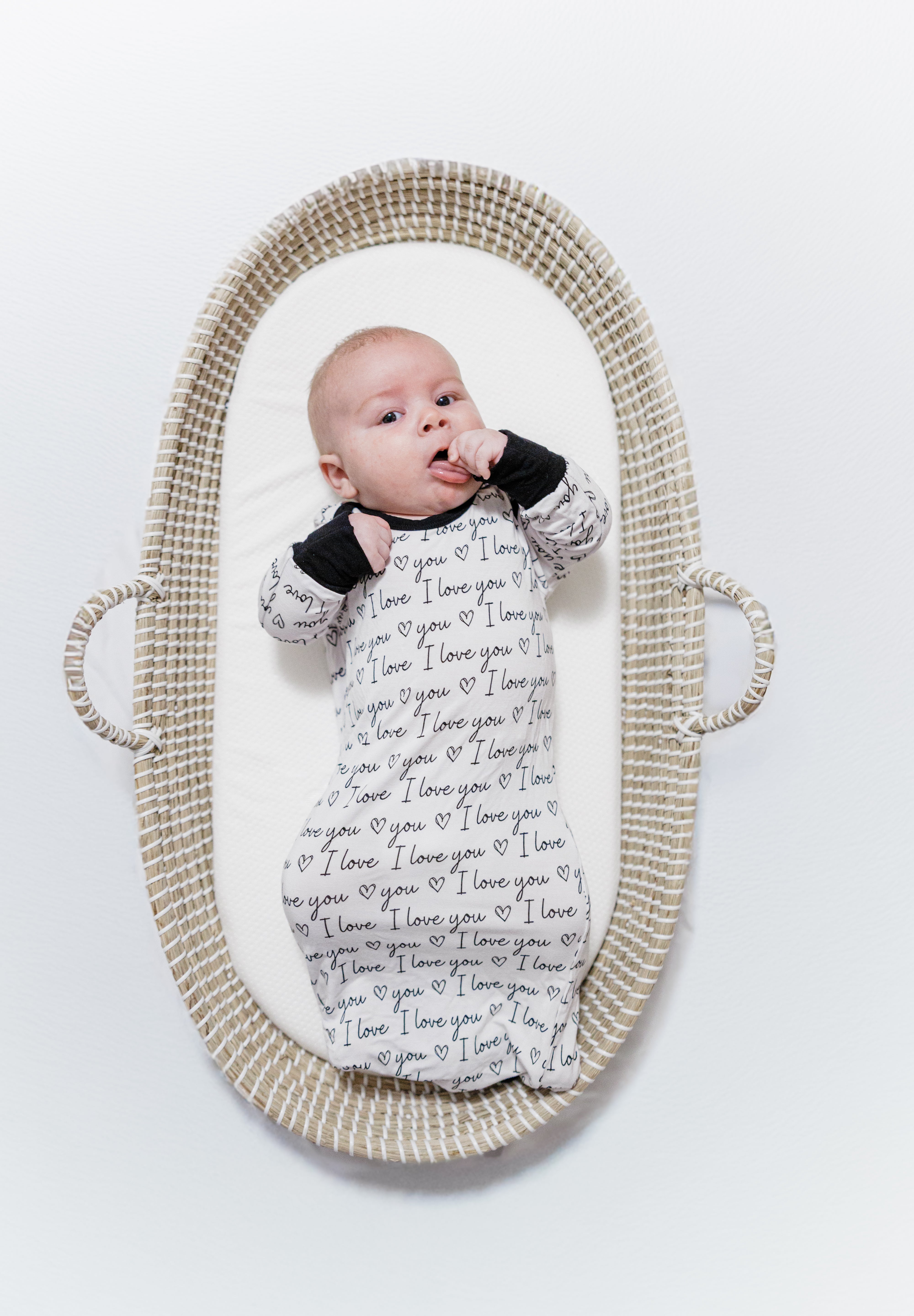 Wrap your baby in love with our ultra-soft Bamboo Knotted Gown in the sweet and timeless “I Love You” print. Crafted from premium, breathable bamboo fabric, it’s gentle on delicate skin and keeps your little one cozy day and night. Thoughtfully designed with fold-over mittens to prevent scratches and a tie-bottom for easy diaper changes, this gown blends comfort, convenience, and charm. A perfect mix of softness and simplicity — made for snuggles, sleep, and everything in between.