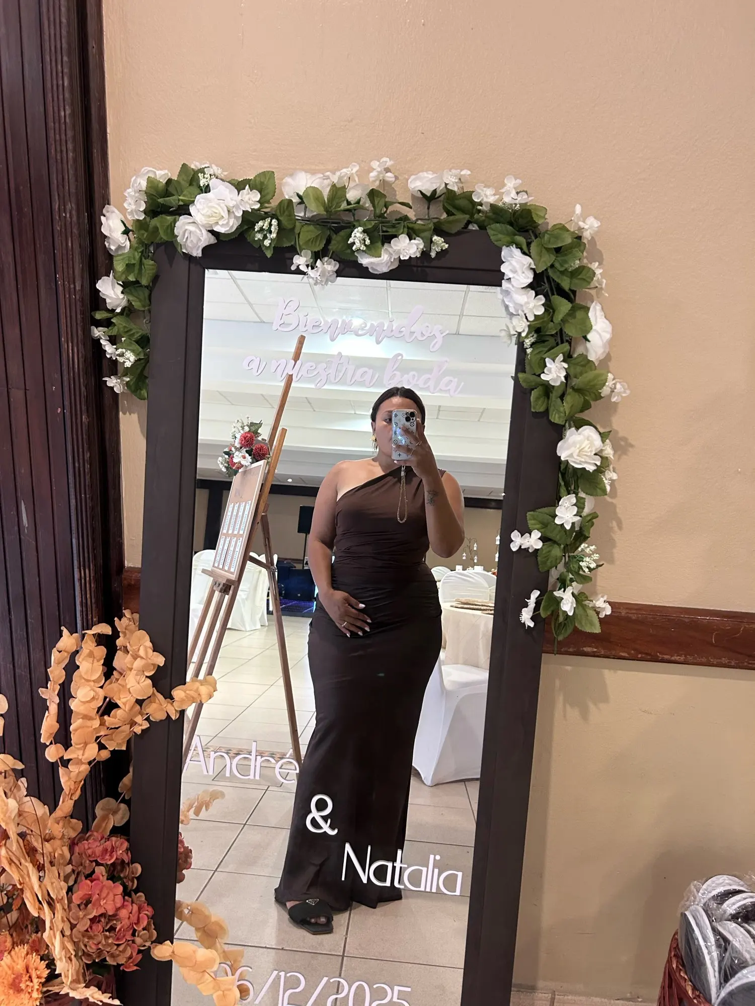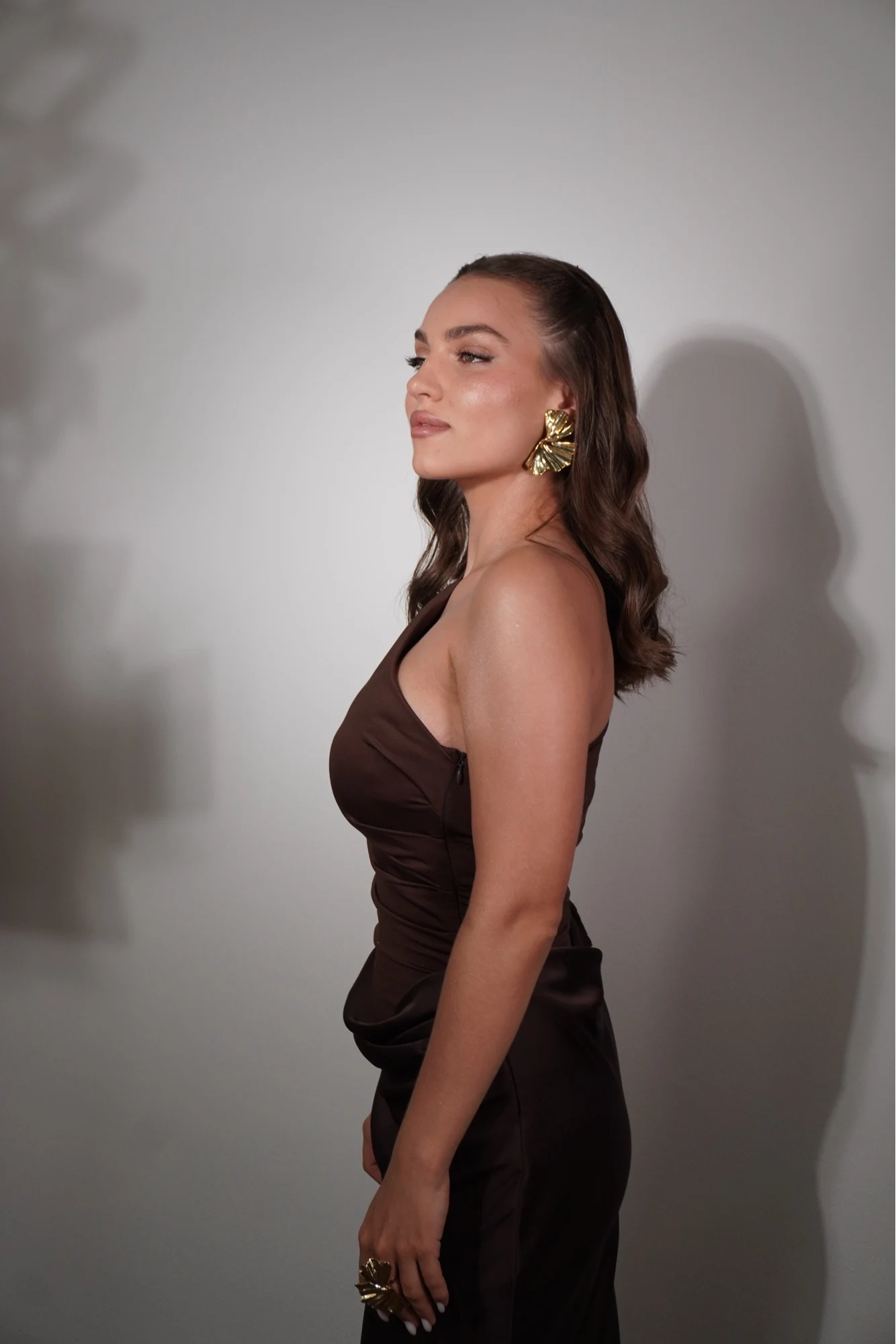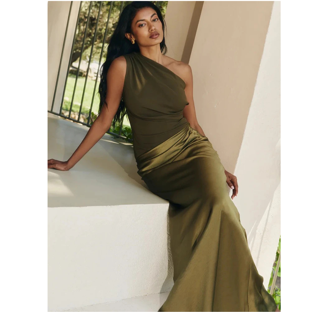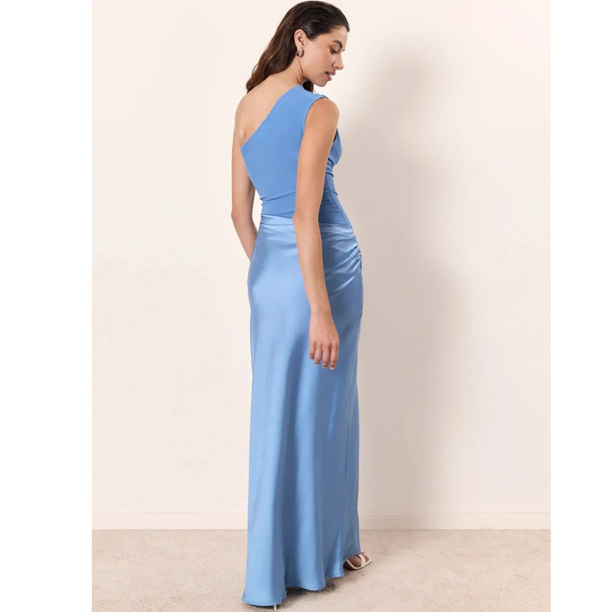Elevate any special occasion with our Aria Satin Evening Dress. Designed with a sleek, asymmetrical neckline, this dress drapes beautifully over the body, offering a smooth, glossy finish that catches the light with every step.