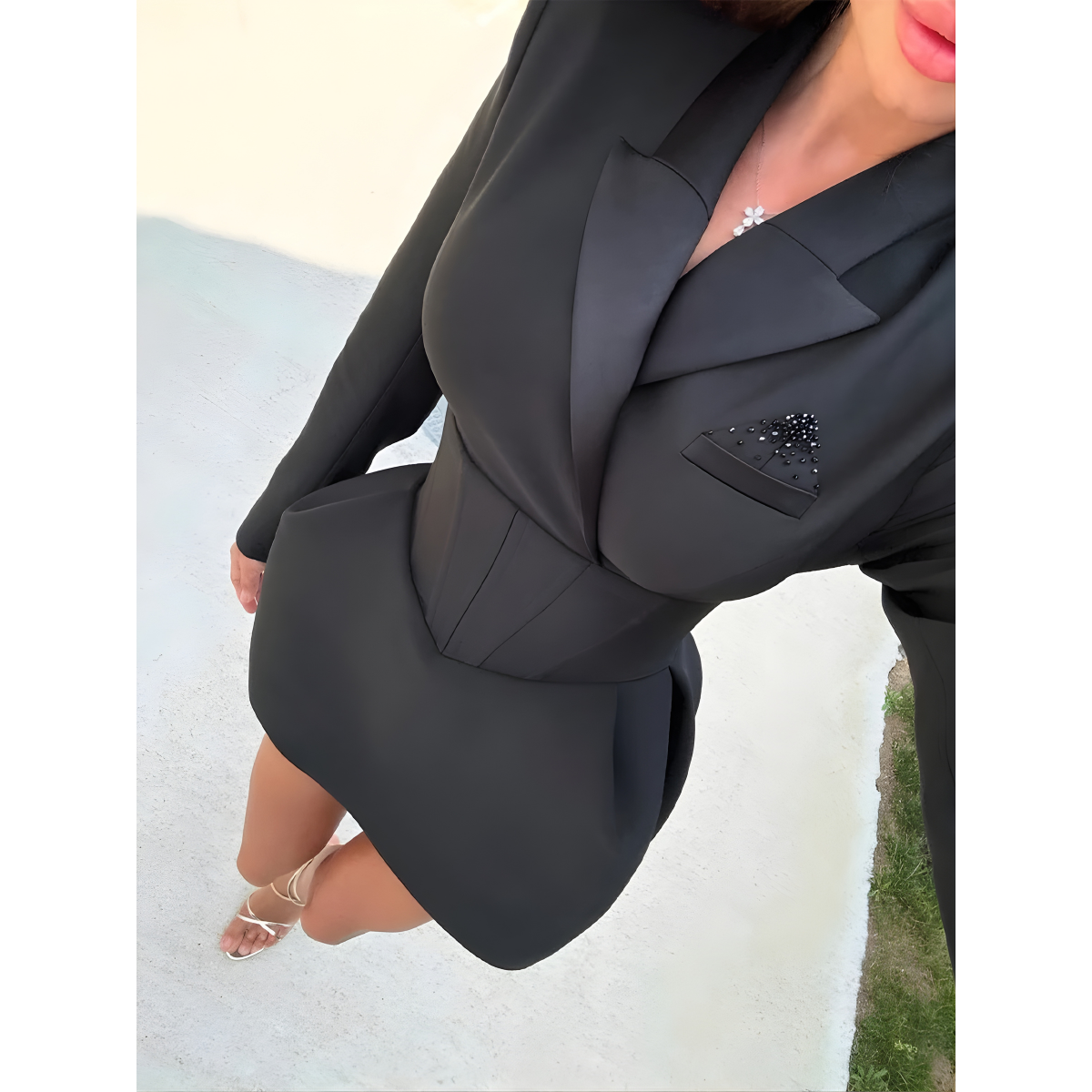 Blazer-inspired bodice for a chic, structured look