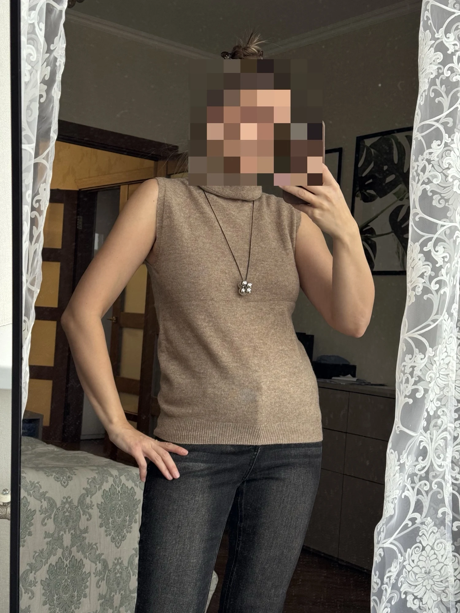 Its sleeveless design and elegant high neckline create a sleek, polished silhouette — perfect for layering or wearing on its own for a clean, modern look.